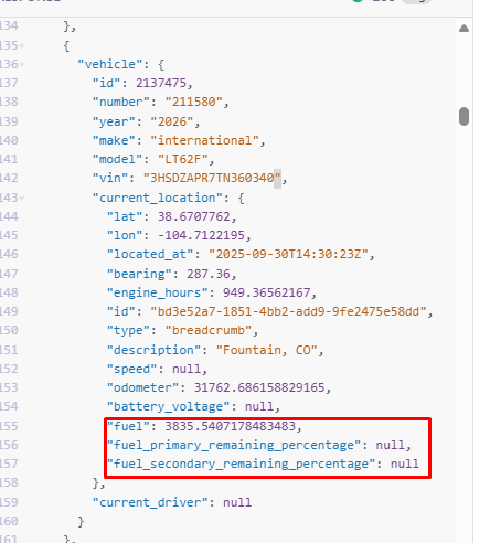 Here as it's shown fuel info is not available , but it's showing the fuel percentage in the main website ? what is wrong